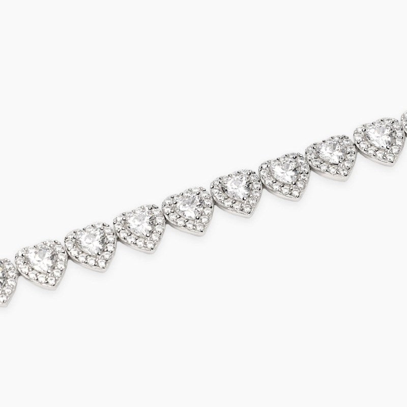 Bracciale in argento rodiato con zirconi bianchi taglio cuore.