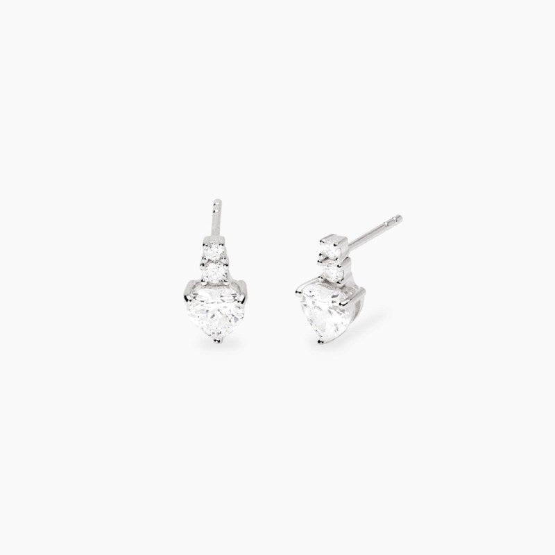 Orecchini in argento rodiato con pendente cuore in zirconi. Dimensione zircone taglio cuore: 6x6 mm. Diametro zirconi: 2 e 2,5 mm. Lunghezza tot. orecchino: 1,1 cm. Materiale: Argento rodiato 925, Zirconi.