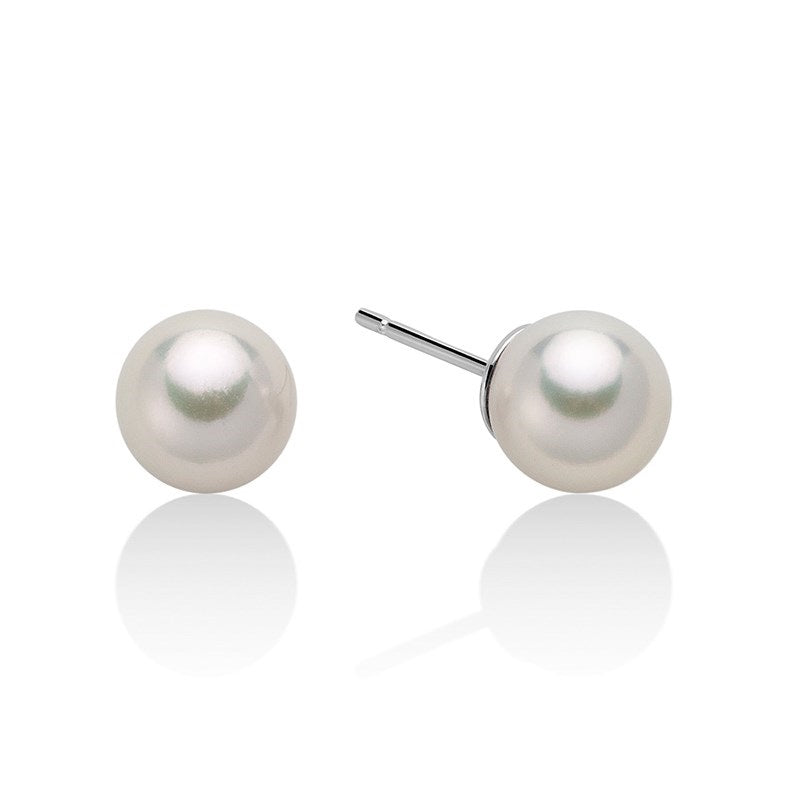 Orecchini da donna miluna, collezione perle gemelle akoya, in oro 750/1000. 2 perle akoya antiqua spec. selection. col. bianco 7, 5-8 mm.