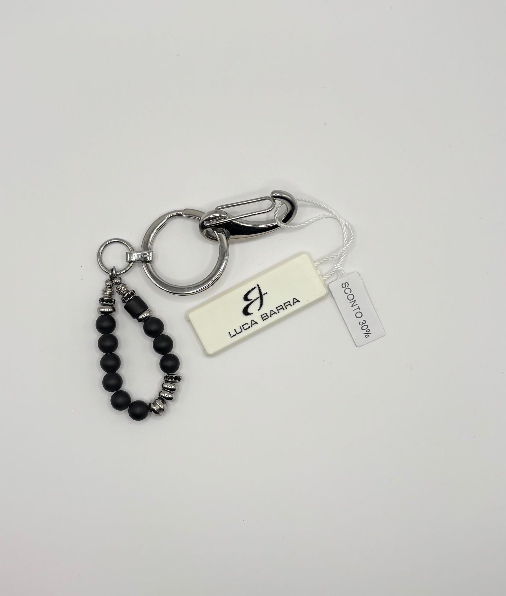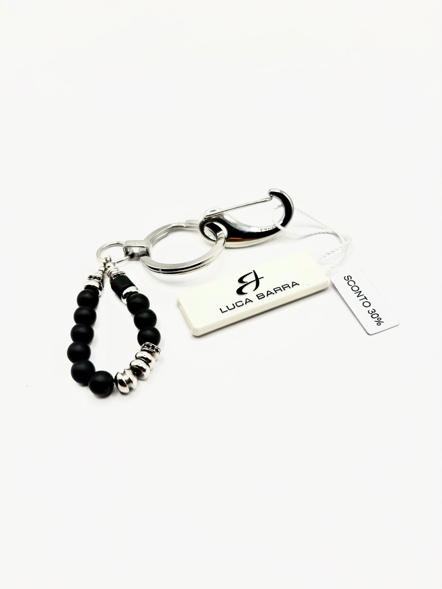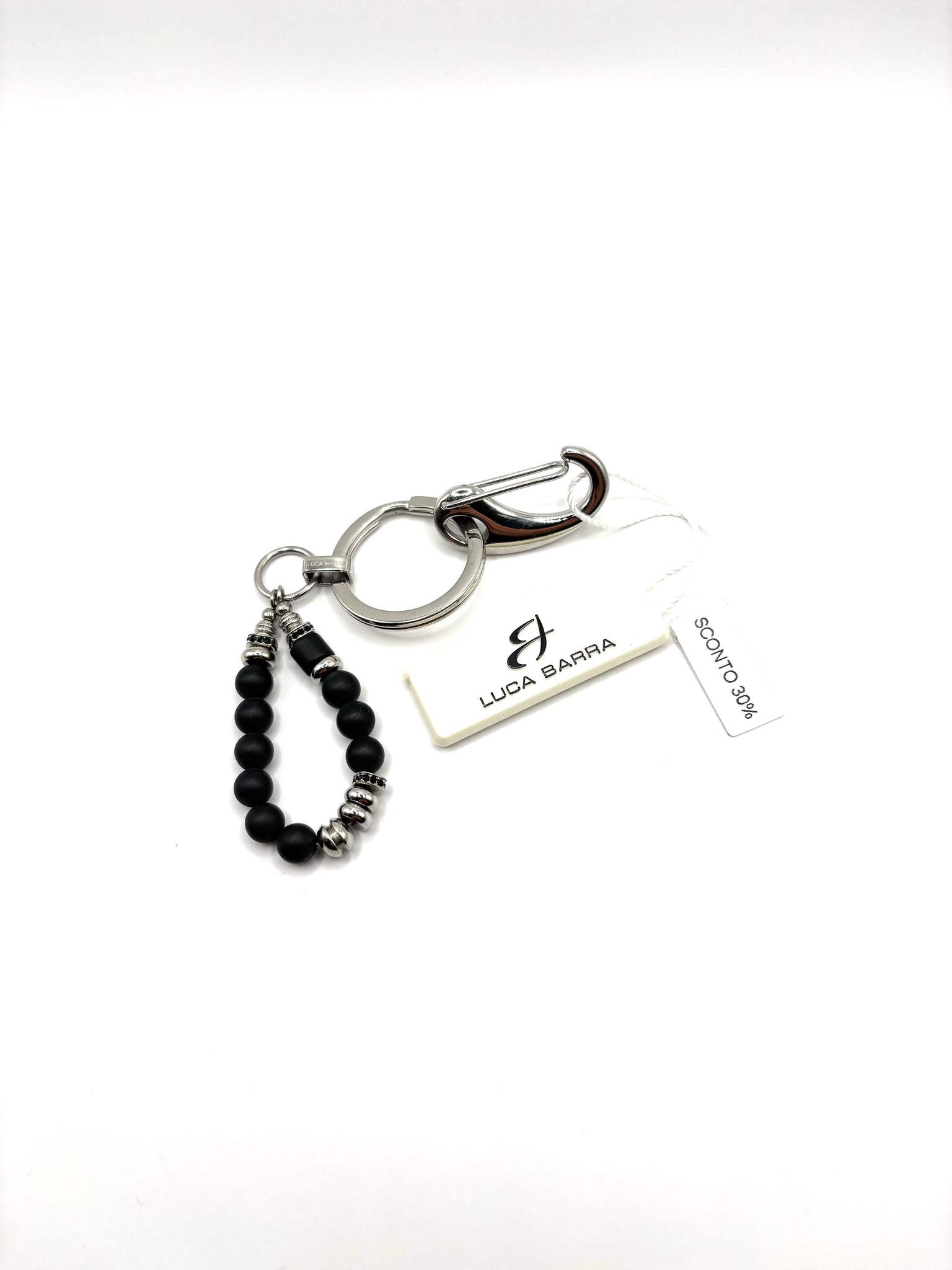 Portachiavi di Luca Barra della collezione Be Happy. Portachiavi in acciaio con onice e cristalli neri. Cm 10,50