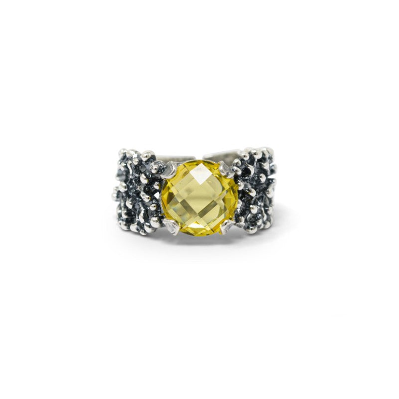 Anello in Argento 925/000 e perle naturali. Anello abissi con zircone colore topazio giallo. Realizzato a mano in Italia. Dimensioni altezza 1 cm.