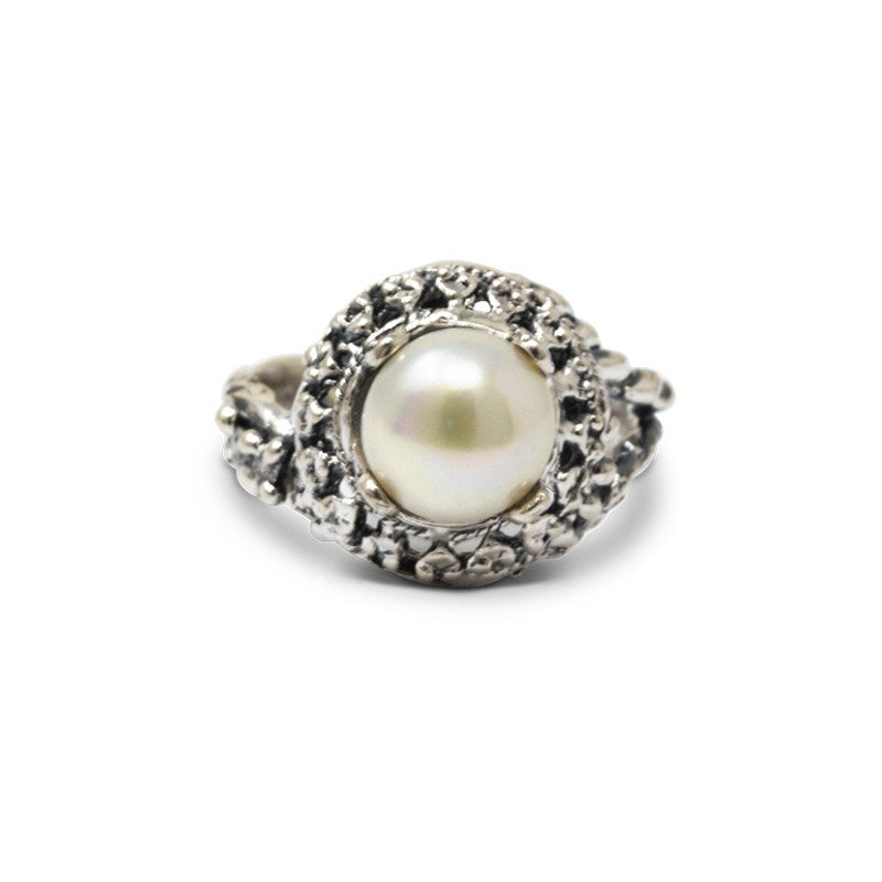 Anello in Argento 925/000 e cristalli colorati. Realizzato a mano in Italia su misura ed è corredato di Garanzia e Certificato di Autenticità. Pietra Centrale perlao 10 mm. Dimensioni diametro 1,5 cm. Anello regolabile.