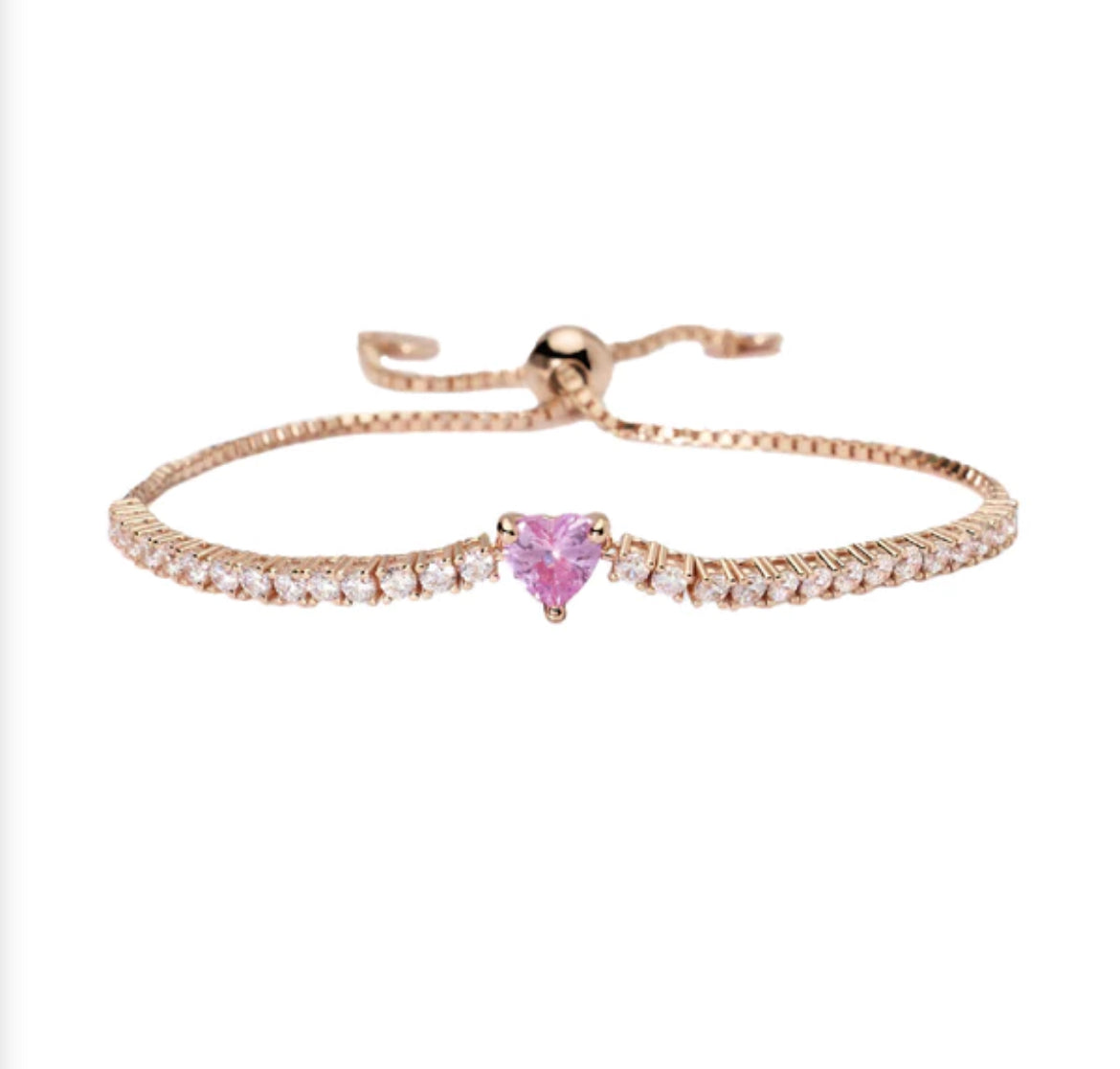 Bracciale tennis da donna della collezione Mabina Rouge in argento placcato oro rosa con cuore di tormalina sintetica rosa 533842