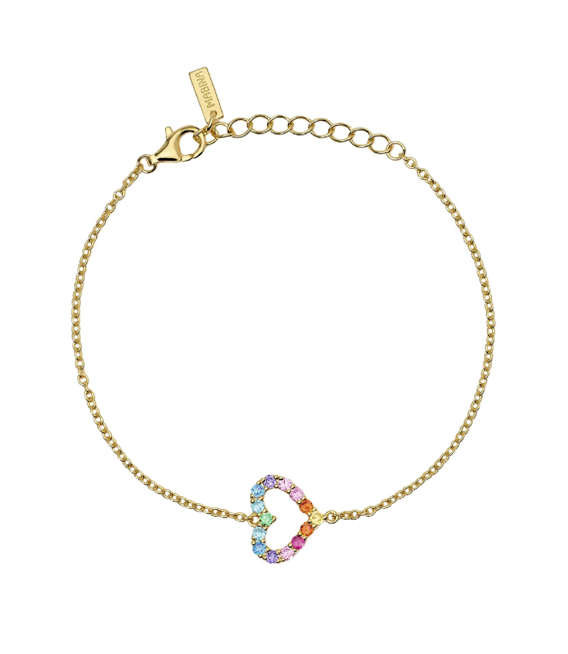 Bracciale catena da donna della collezione Mabina Happy Love in argento placcato oro con catena e cuore centrale di zirconi multicolor 533836