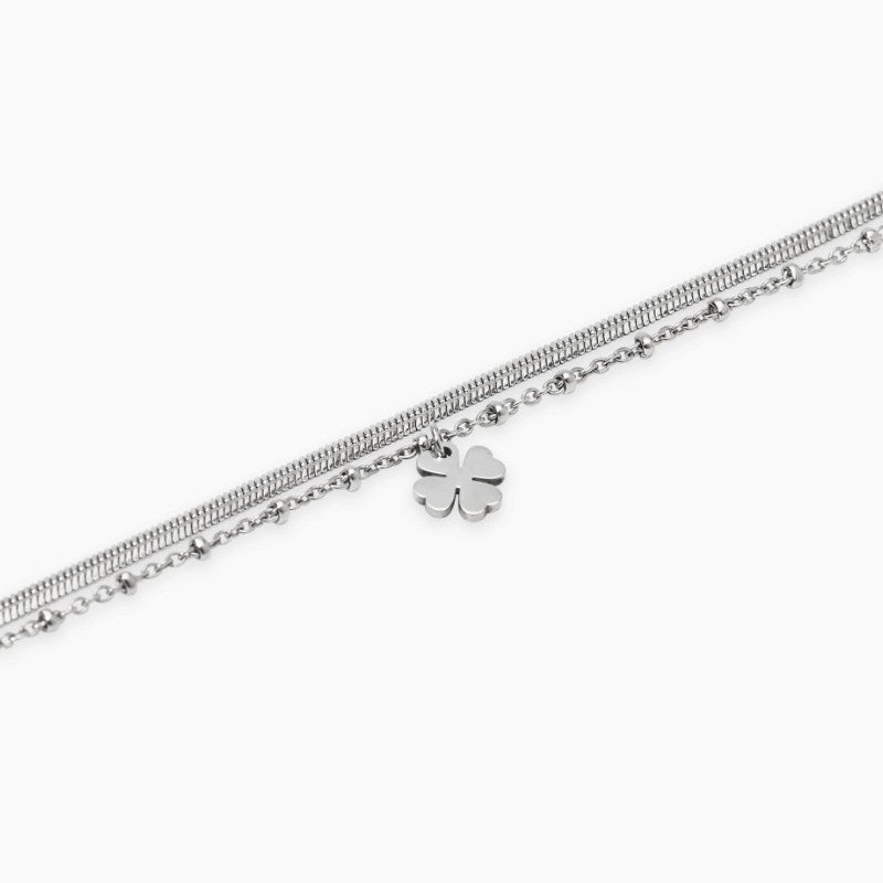 Bracciale da donna in acciaio con catene e ciondolo quadrifoglio Style 38 Kidult 831070
