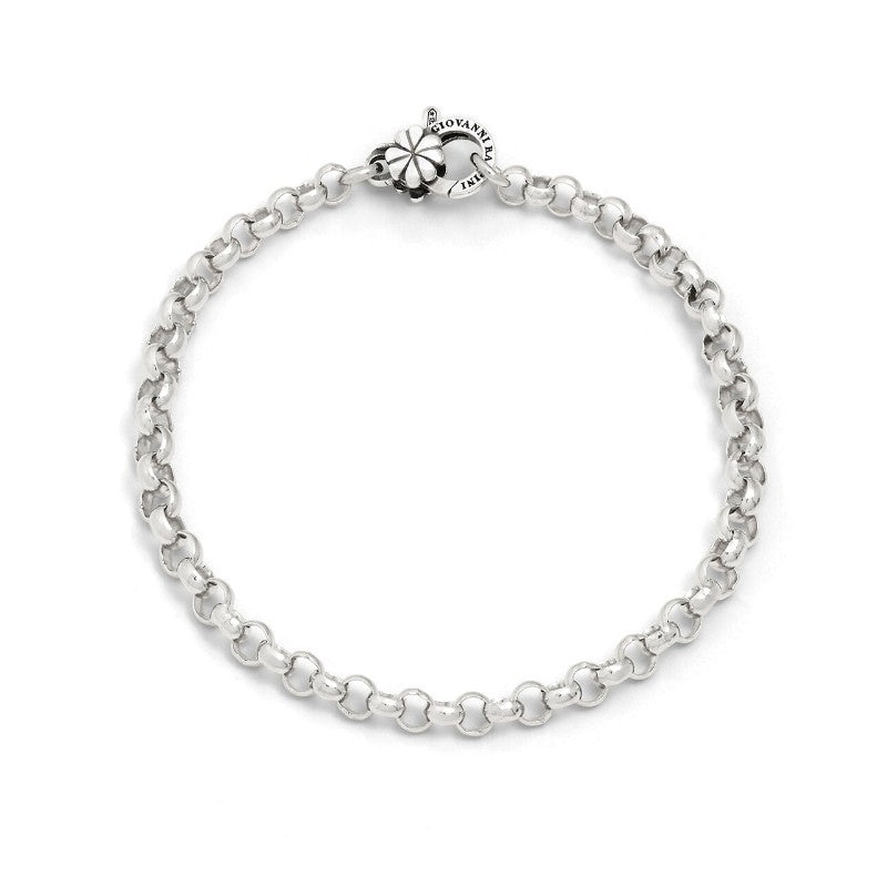 Bracciale da donna in Argento 925 rolò quadrifoglio Giovanni Raspini. Argento 925. Lunghezza 21 cm. Chiusura con moschettone. Fatto a mano in Italia.
