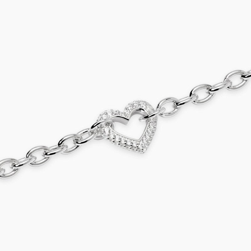 Bracciale regolabile in argento rodiato con catena rolò e cuore in zirconi bianchi. Dimensione cuore: 14x12 mm. Diametro zirconi: 1,25 mm. Misura regolabile, lunghezza da 17 a 20 cm. Materiale: Argento 925, Zirconi.