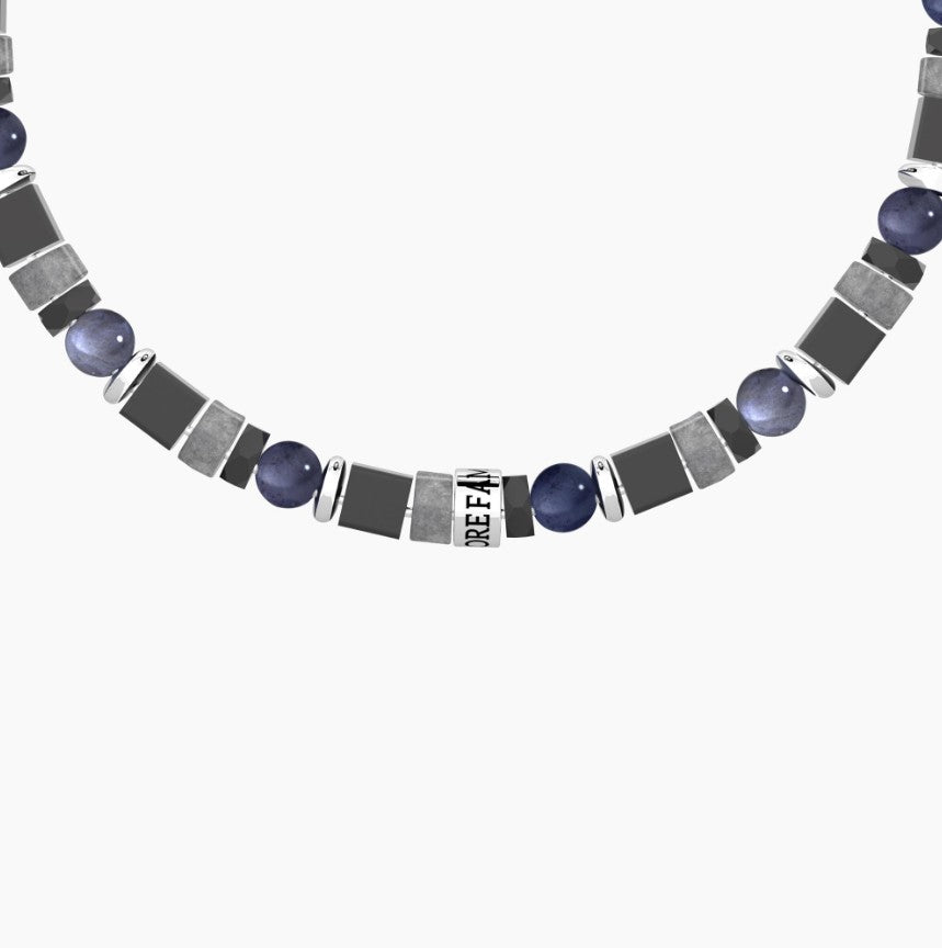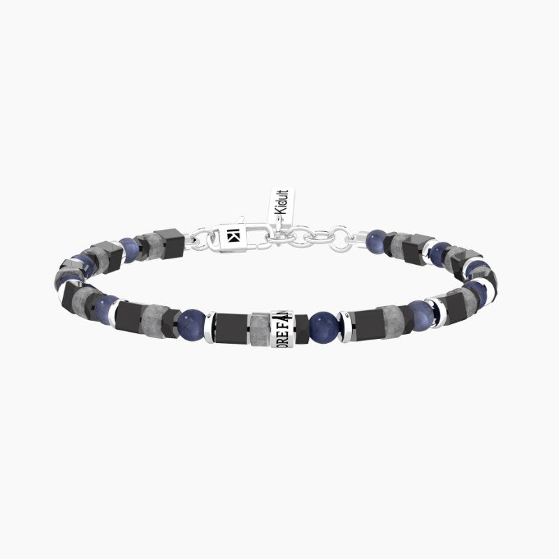 Bracciale regolabile da uomo in acciaio con pietre multicolor lisce, lucide e faccettate di diverse dimensioni. Scritta "FAMIGLIA È AMORE". Collezione Family. Dimensione delle pietre: Ø 4, 1.5xØ3.7, 2.5xØ4.5 mm. Misura regolabile, lunghezza da 19 a 21 cm. Materiale: Acciaio 316L, Pietre. Immagine indicativa in quanto trattandosi di pietre naturali i colori del bracciale potrebbero variare.