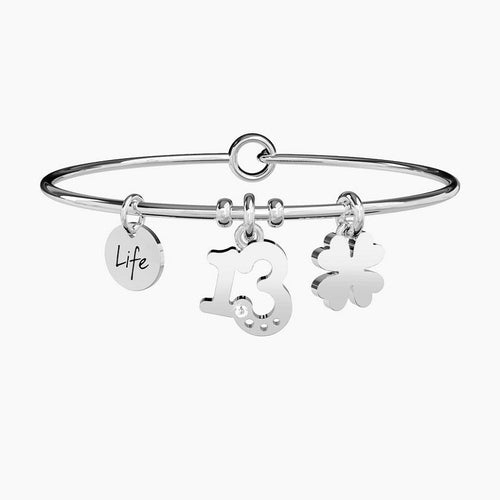 Bracciale da donna in acciaio a forma di 13 e di quadrifoglio Kidult 231626