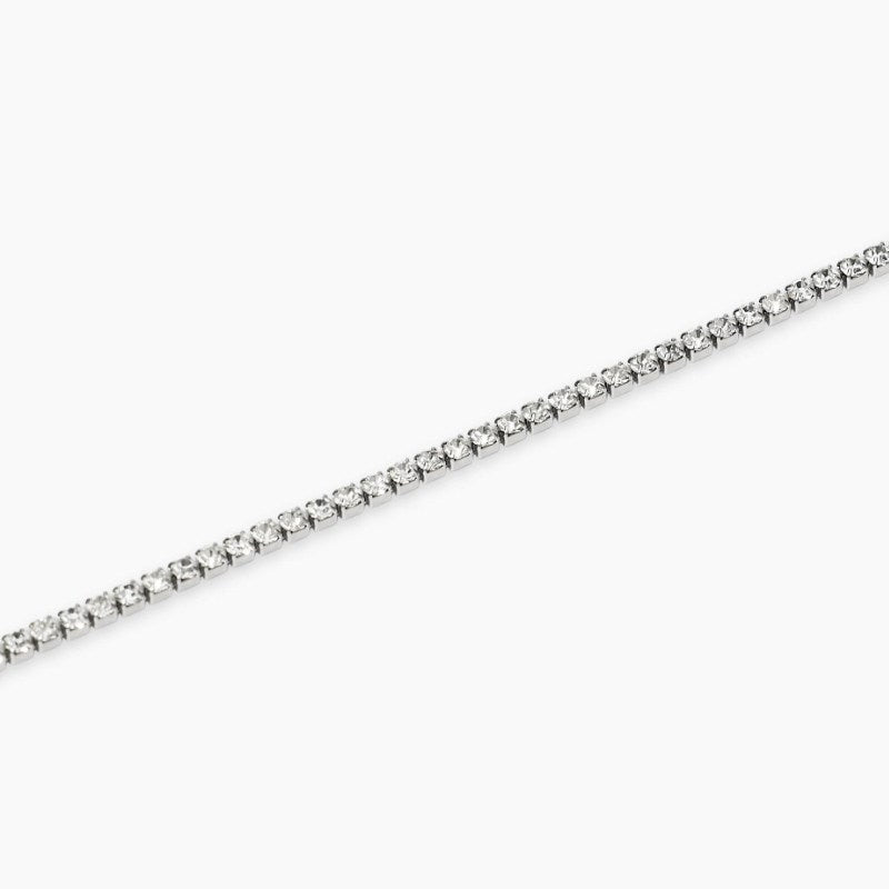 Bracciale regolabile in acciaio con tennis di cristalli bianchi. Collezione style 12. Diametro cristalli: 2 mm. Misura regolabile, lunghezza da 18 a 20,5 cm. Materiale: Acciaio 316L, Cristalli.