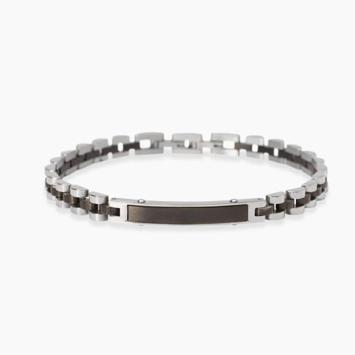 Bracciale da uomo in acciaio con piastra e inserti in gunmetal Style 18 Kidult 831115