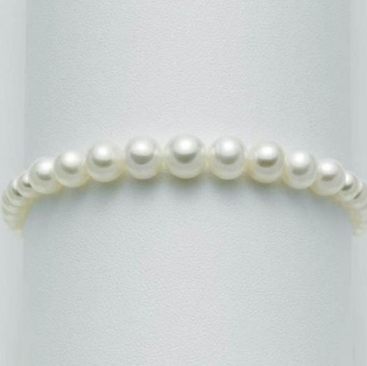 Bracciale in perle coltivate Oriente color bianco diam. 4,5-5 Misura 18cm con chiusura a moschettone in Oro Bianco 750/1000