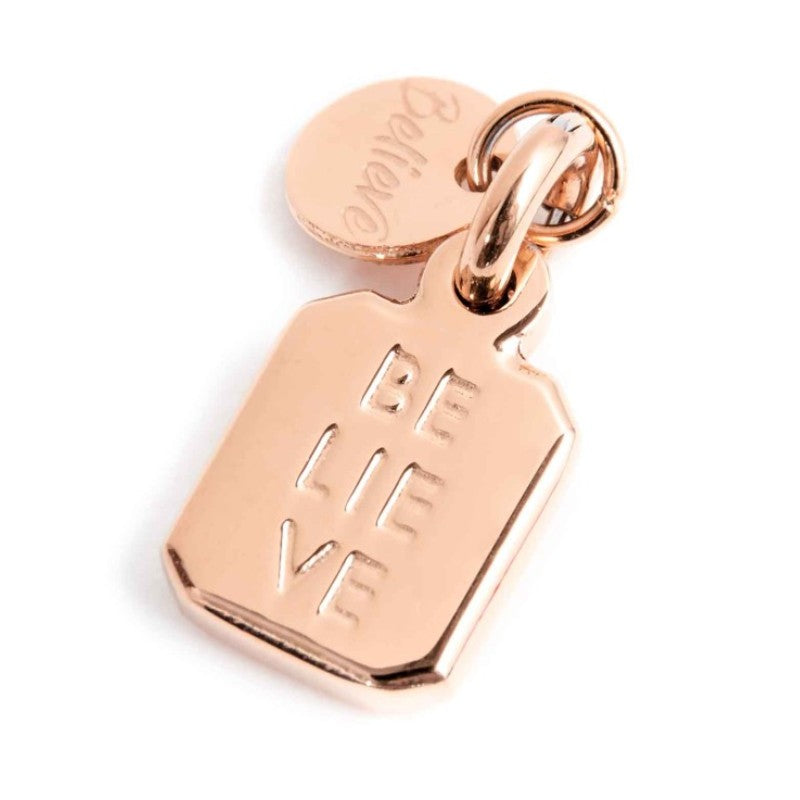 Charm in acciaio Rosé Madonna rettangolare.