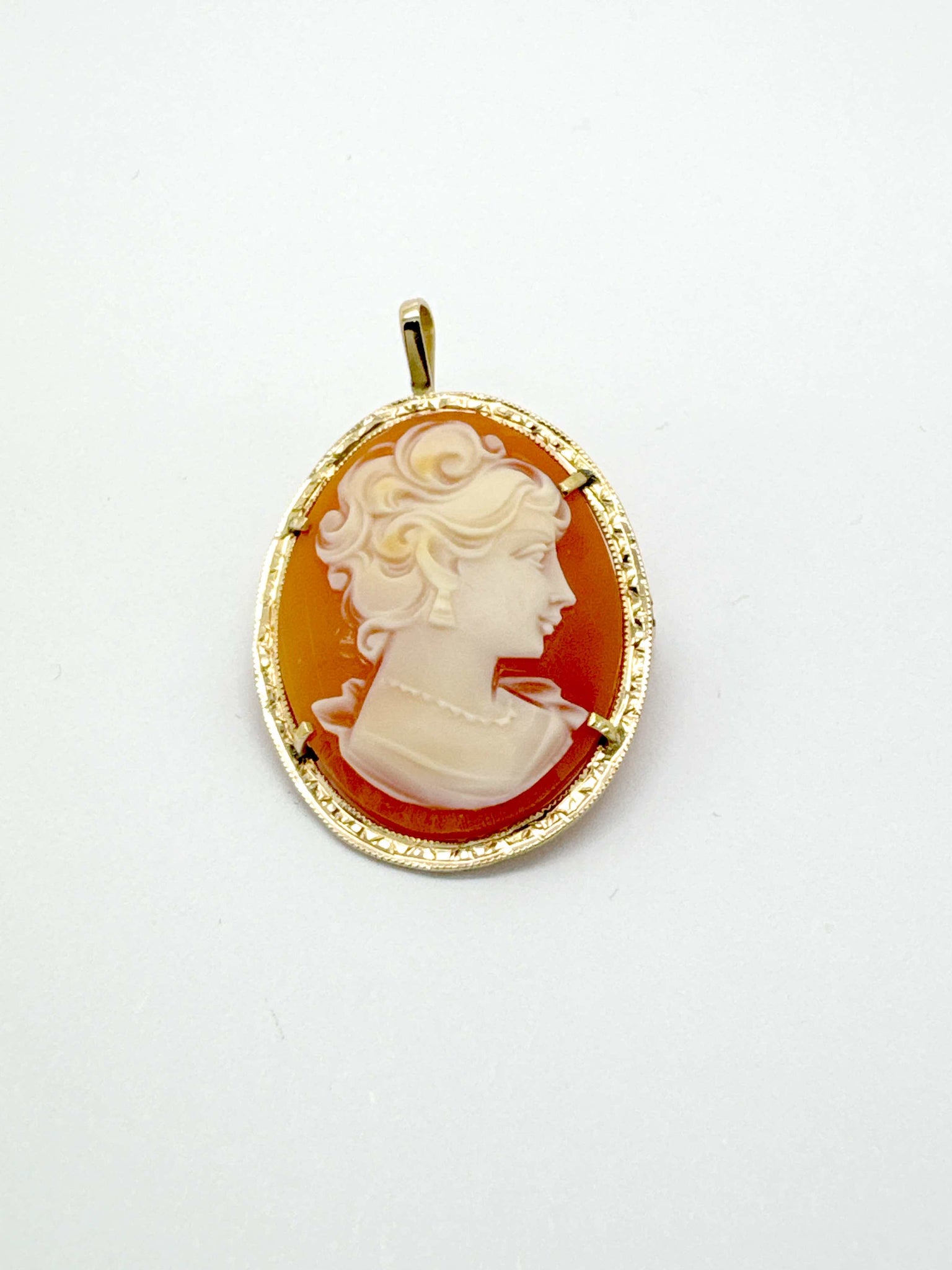 18kt yellow gold shell engraved cameo pendant, item code 74214