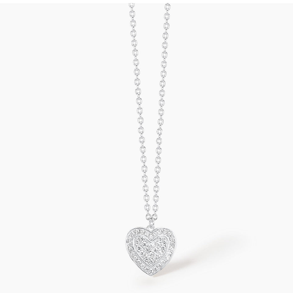Girocollo rolò in argento con ciondolo a cuore in pavé di zirconi. • Chiusura con moschettone • Misura regolabile, lunghezza da 40 a 45 cm • Materiale: Argento 925, Zirconi