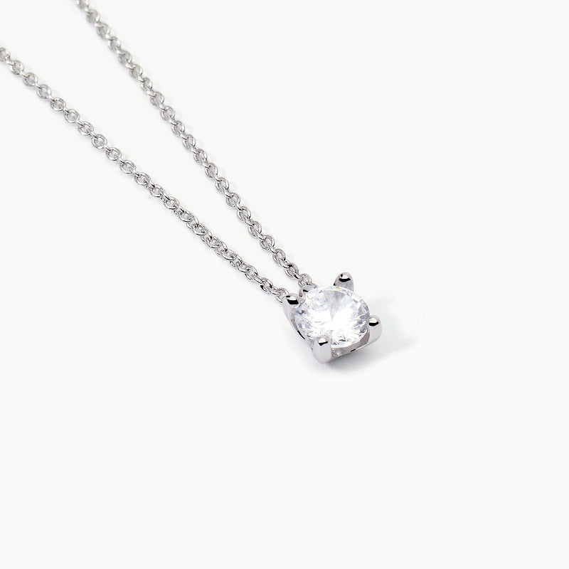 Girocollo da donna in argento rodiato con catena forzatina e ciondolo pendente con zircone bianco. Diametro zircone: 5,5 mm. Dimensioni catena: 1,15 mm. Misura regolabile, lunghezza da 39 a 43 cm. Chiusura con moschettone. Materiale: Argento 925, Zirconi.