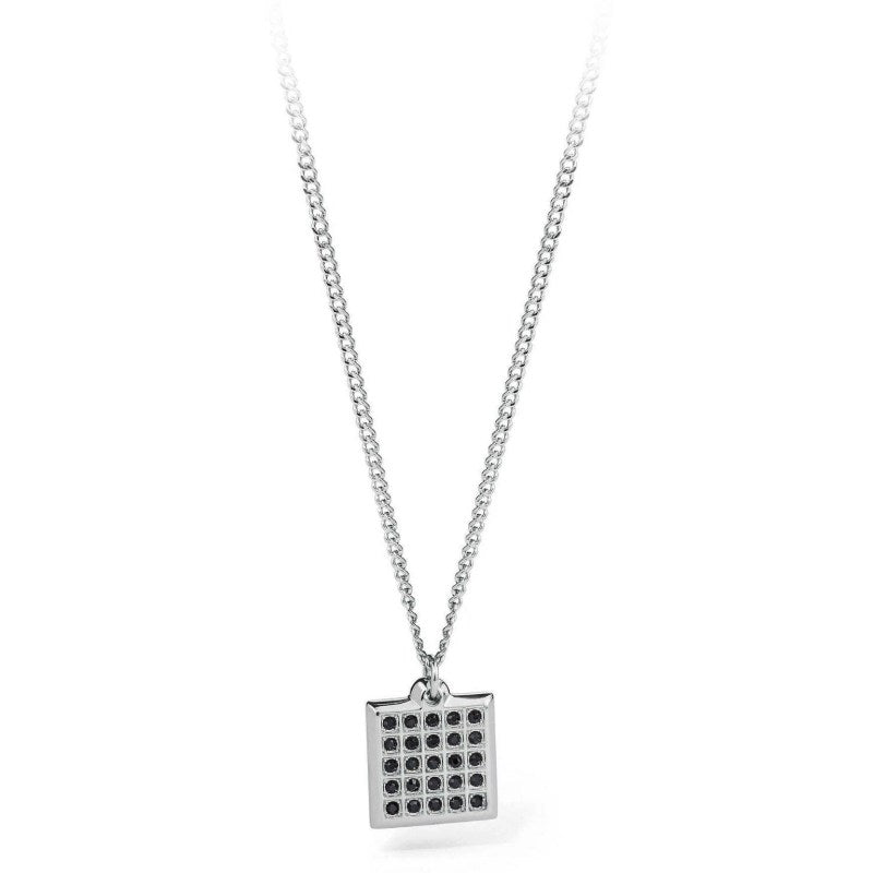 Collana da uomo in acciaio collezione Fifth Avenue S'Agapõ. Collana in acciaio 316L Con Piastra di zirconi neri. Lunghezza collana regolabile da 46 a 48 cm. Dimensioni ciondolo 1,3 x 1,3 cm. Chiusura con moschettone.