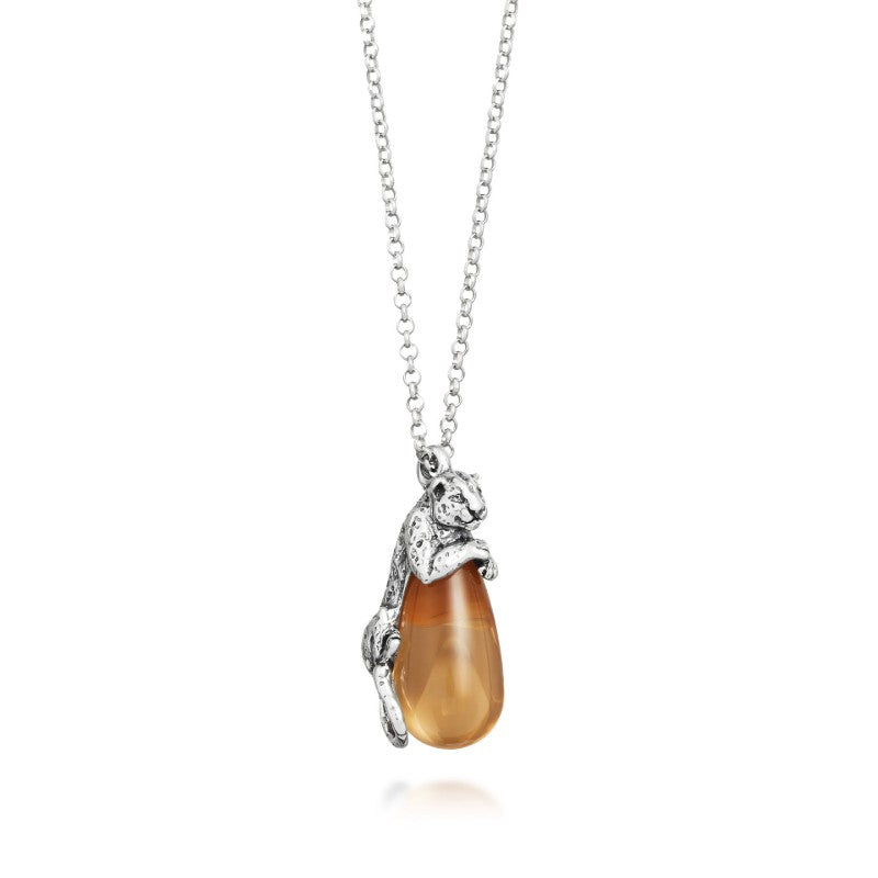 Collana pendente da donna in Argento 925 goccia leopardo Giovanni Raspini. Argento 925 e cristallo citrino. Lunghezza catena 45 cm. Lunghezza pendente 3,4 cm. Chiusura con moschettone. Fatto a mano in Italia.