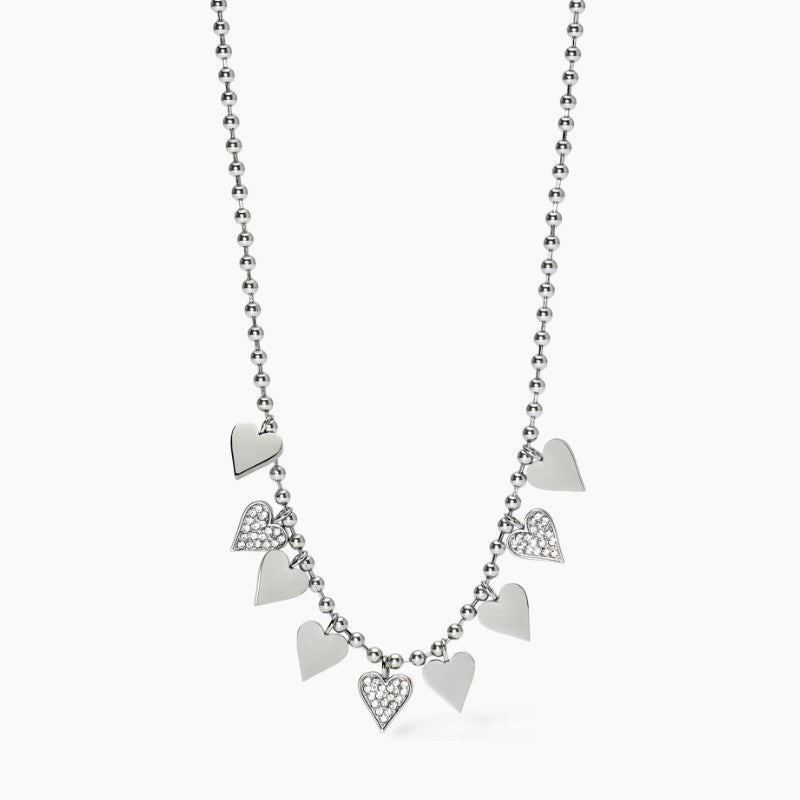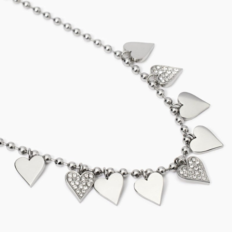 Girocollo da donna in acciaio con catena a sfere e cuori Kidult 851032