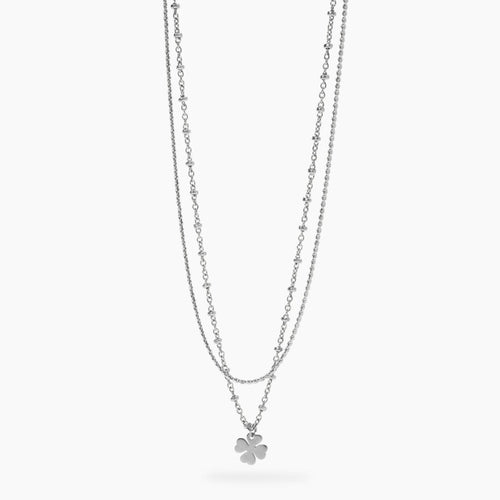 Collana da donna in acciaio con catene e quadrifoglio Style 30 Kidult 851050