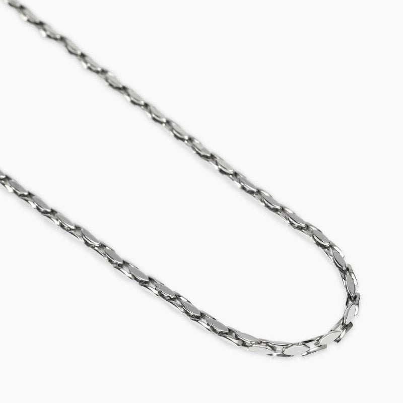 Collana in acciaio con catena fancy. Collezione style 05. Larghezza catena: 4 mm. Misura unica, lunghezza 50 cm. Materiale: Acciaio 316L.