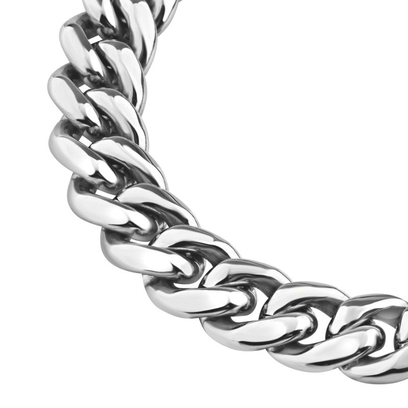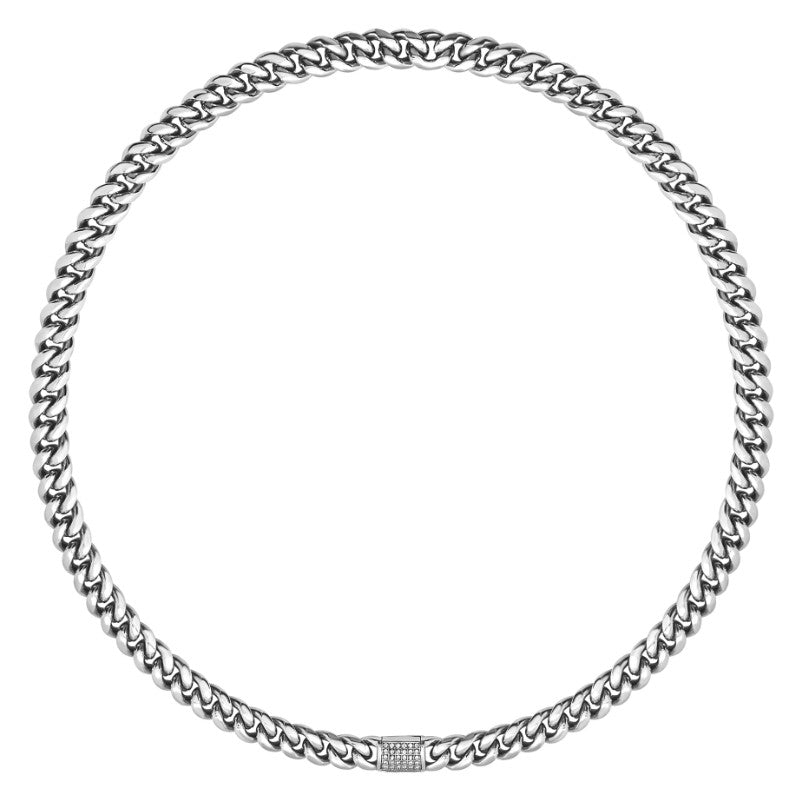 Collana da uomo in acciaio Breil collezione Steel & Spark. Colore argento. Il gioiello è realizzato in acciaio inossidabile 316L, impreziosito da zirconi. Lunghezza 52 cm. Chiusura a moschettone.