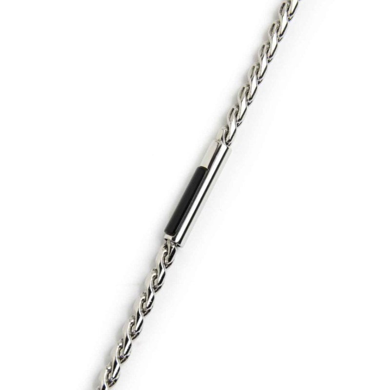 Collana da uomo in acciaio con catena corda 2.8 mm e inserto. Lunghezza 48/50 cm regolabile Collezione : Man Class 24 Materiali : Acciaio, legno, onice