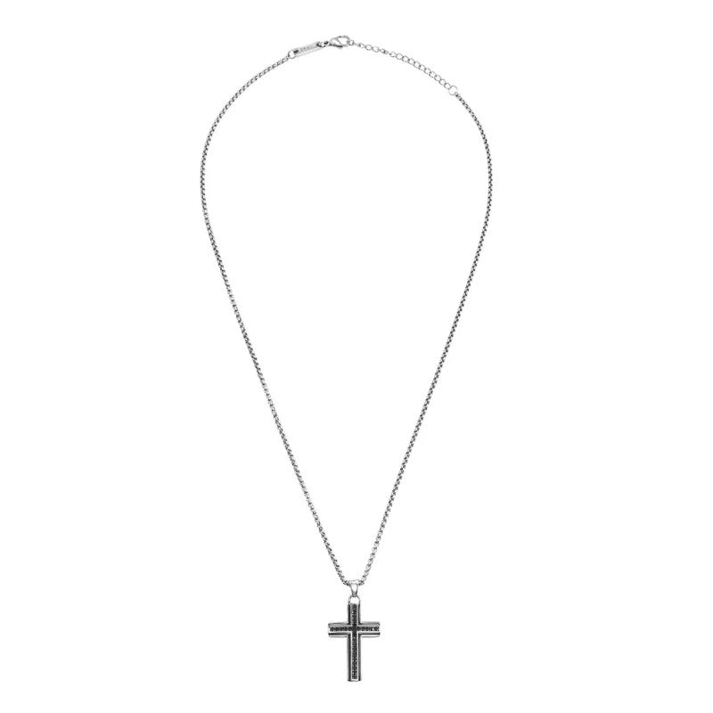 Collana girocollo della collezione Breil Steel & Spark da uomo. Colore: argento e nero. Il gioiello è realizzato in acciaio inossidabile 316L ed è caratterizzato da un pendente a forma di croce con finitura bilux impreziosito da zirconi di colore nero. Lunghezza regolabile da 47 cm a 52 cm. Chiusura a moschettone.