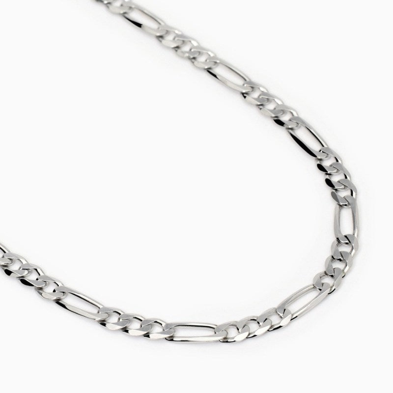 Collana da uomo in argento rodiato con catena figaro. Chiusura con moschettone. Misura unica, lunghezza 50 cm Materiale: Argento 925.