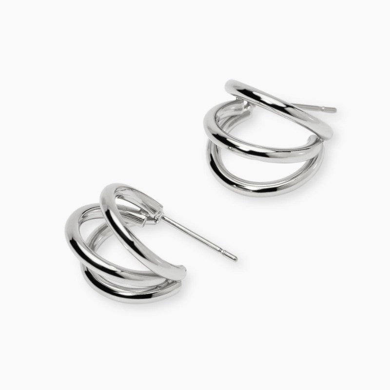 Orecchini con semicerchi in acciaio. Collezione style 09. Diametro esterno: 14,8 mm. Diametro interno: 10,8 mm. Lunghezza totale dell'orecchino: 1,3 cm. Materiale: Acciaio 316L.