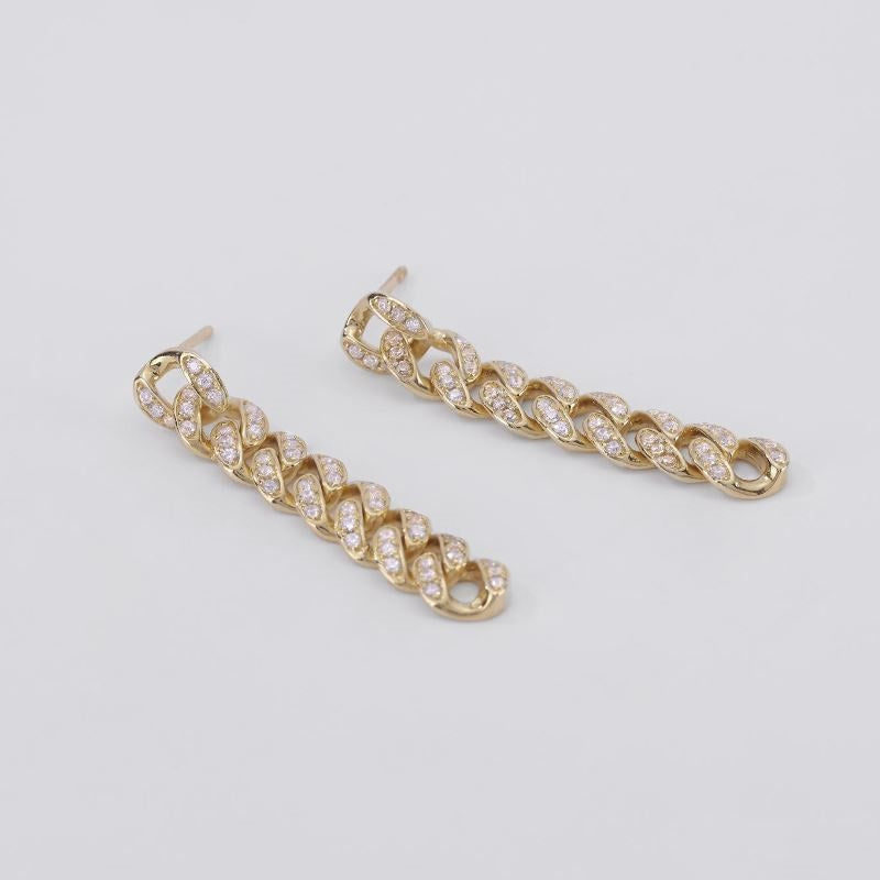 Orecchini groumette in argento dorato con zirconi. Diametro degli zirconi 1 mm. Lunghezza degli orecchini: 3,4 cm. Misura unica. Materiale Argento 925 dorato, Zirconi.