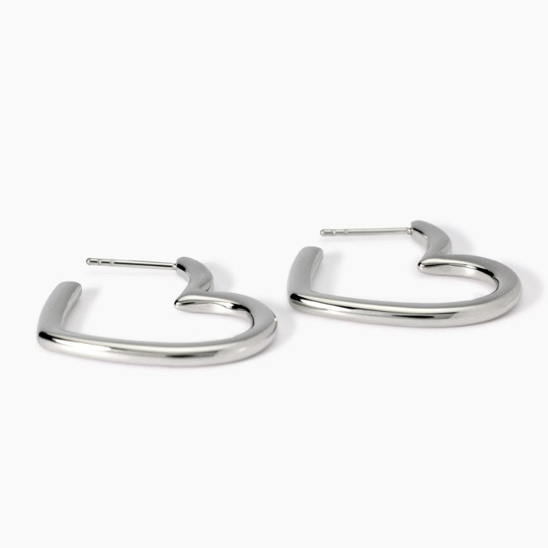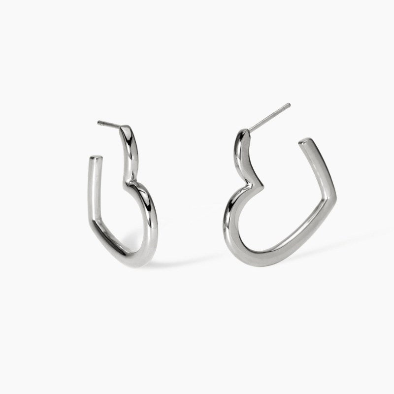 Orecchini a cerchio in acciaio a forma cuore. Collezione Style 25. Dimensione cuore 16x25 mm. Materiale Acciaio 316L.
