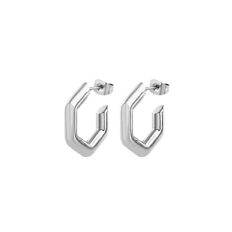 Orecchini da donna di Breil collezione Hexagonia. Hoop a forma esagonale in acciaio lucido. Chiusura a farfalla.
