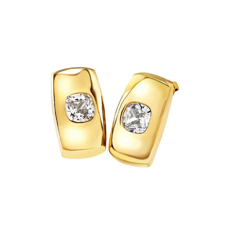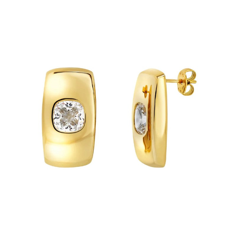Orecchini a lobo della collezione Breil Stylize da donna. Colore: oro. Gli orecchini sono realizzati in acciaio inossidabile 316L con trattamento pvd oro e sono caratterizzati da una forma rettangolare, impreziositi al centro da uno zircone quadrato di colore bianco. Dimensione 1,35 x 2,35 cm. Chiusura a perno.