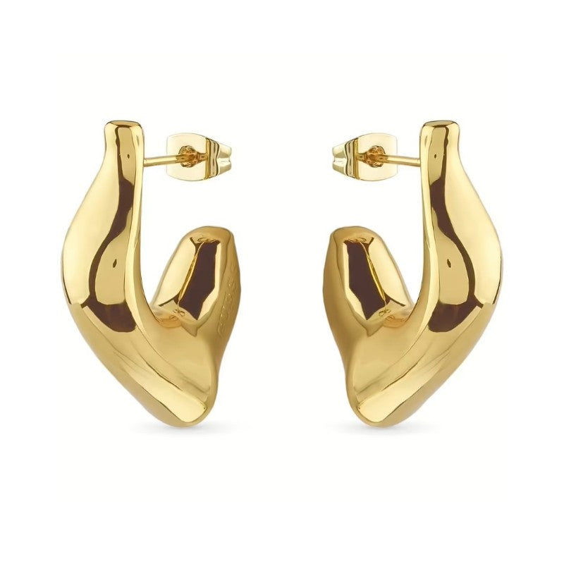 Orecchini da donna di Guess della collezione Berbera. Orecchini realizzata in acciaio e di colore oro giallo. Misure: 30 mm.