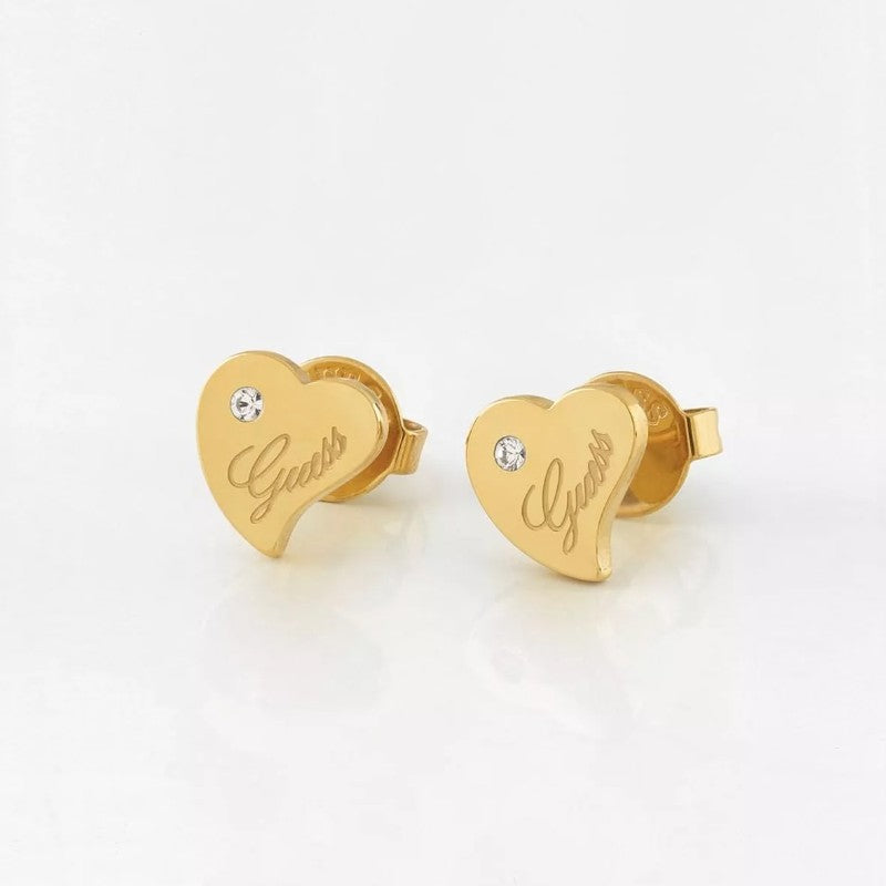 Orecchini in acciaio placcato oro con cuore e zirconi cubici, impreziositi dalla firma Guess. Il design minimalista con chiusura a perno si adatta a qualsiasi stile, perfetto da indossare da solo o abbinato ad altri gioielli. Il simbolismo del cuore li rende un regalo significativo per chi ami. Realizzati in acciaio di alta qualità, sono eleganti e duraturi.