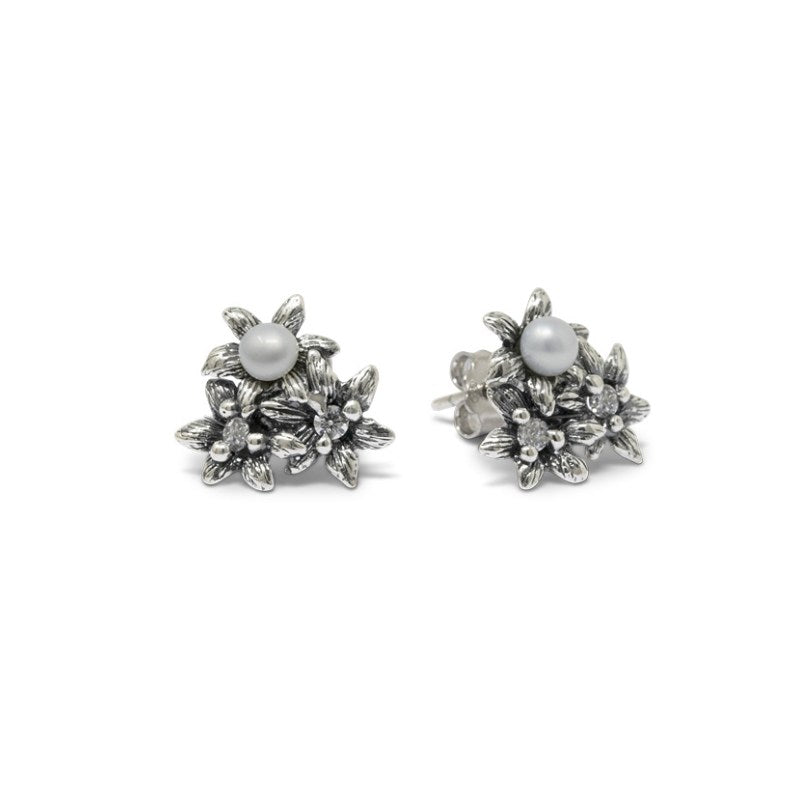 Orecchini in Argento 925/000 ziconi e perle naturali. Realizzato a mano in Italia ed è corredato di Garanzia e Certificato di Autenticità. Orecchini al lobo. Dimensioni h 1,7 cm x l 1,5 cm. Pietre Zirconi n. 4. Perle naturali n. 2.