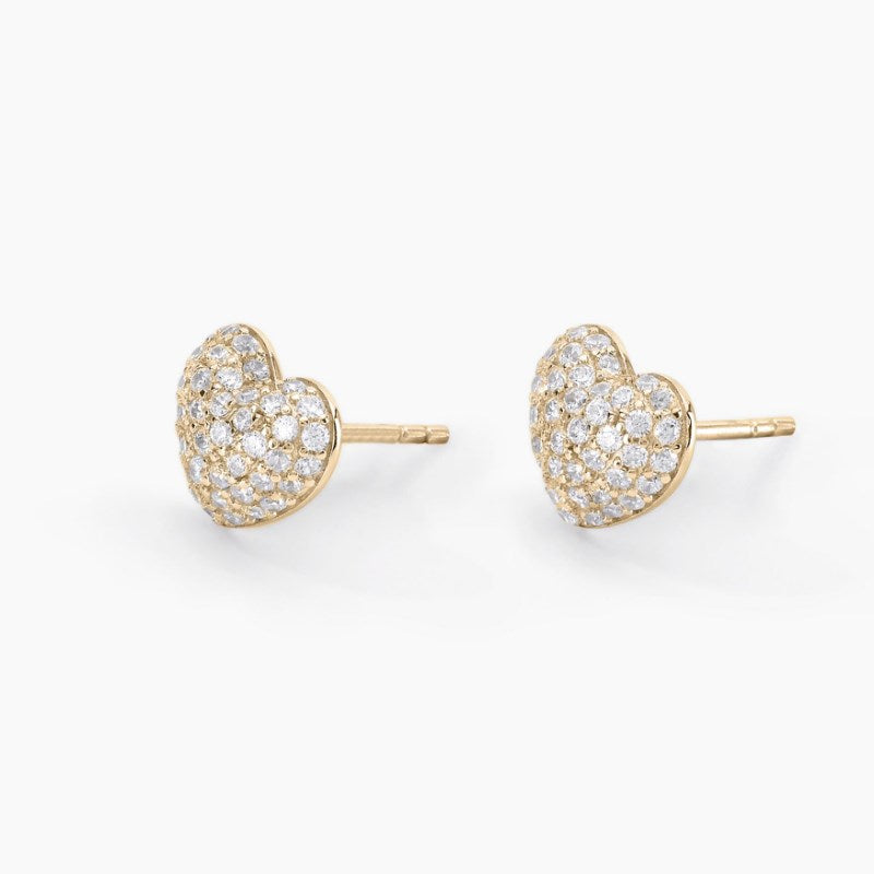 Orecchini a lobo in argento placcato oro 18k a cuore in pavé di zirconi. Dimensione dei cuori: 10,1 x 8,7 mm. Diametro degli zirconi: 1,25 mm. Materiale: Argento 925, Zirconi. Finitura: Placcatura in oro 18k.