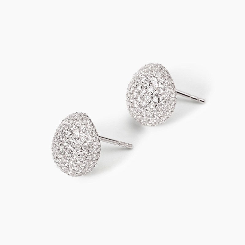Orecchini a goccia in argento rodiato e zirconi bianchi. Dimensione orecchino: 11x12 mm. Diametro zirconi: 1,25 mm. Materiale: Argento 925, Zirconi.