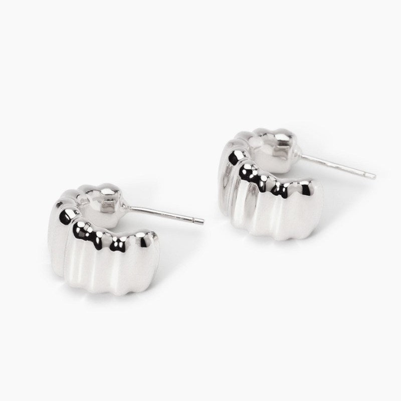 Orecchini in argento rodiato. Dimensione orecchino: 12,2x18,4 mm. Diametro interno: 9,5 mm. Materiale: Argento 925.