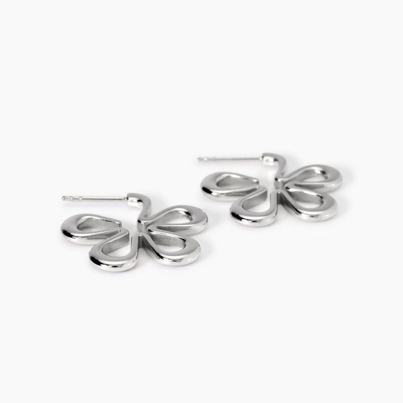 Orecchini a lobo in acciaio a forma di fiore. Collezione Style 17. Dimensione fiore 25x4,5 mm. Materiale Acciaio 316L.