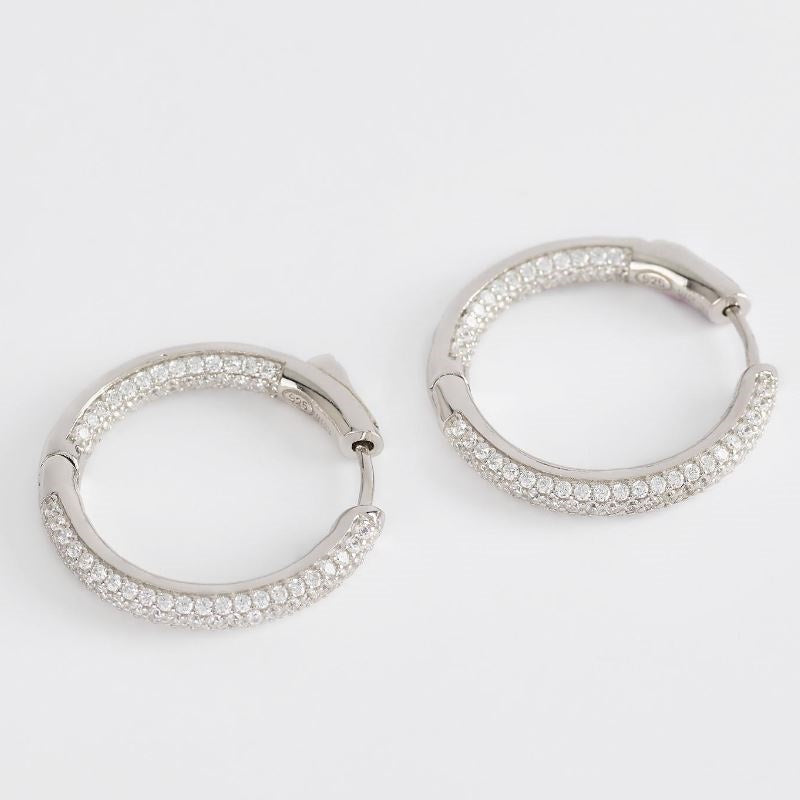 Orecchini a cerchio in argento con pavé in zirconi. Diametro esterno degli orecchini 24 mm. Diametro degli zirconi 1,25 mm. Misura unica. Materiale Argento 925, Zirconi.