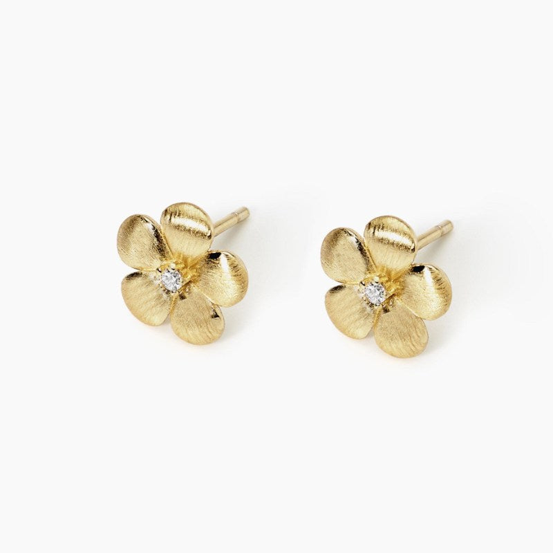 Orecchini a lobo in argento bulinato placcato oro 18K a forma di fiore con zircone.Dimensione fiore: 10,8x10,8 mm. Diametro zirconi: 2 mm. Materiale: Argento 925, Zirconi. Finitura: Placcatura oro 18K.
