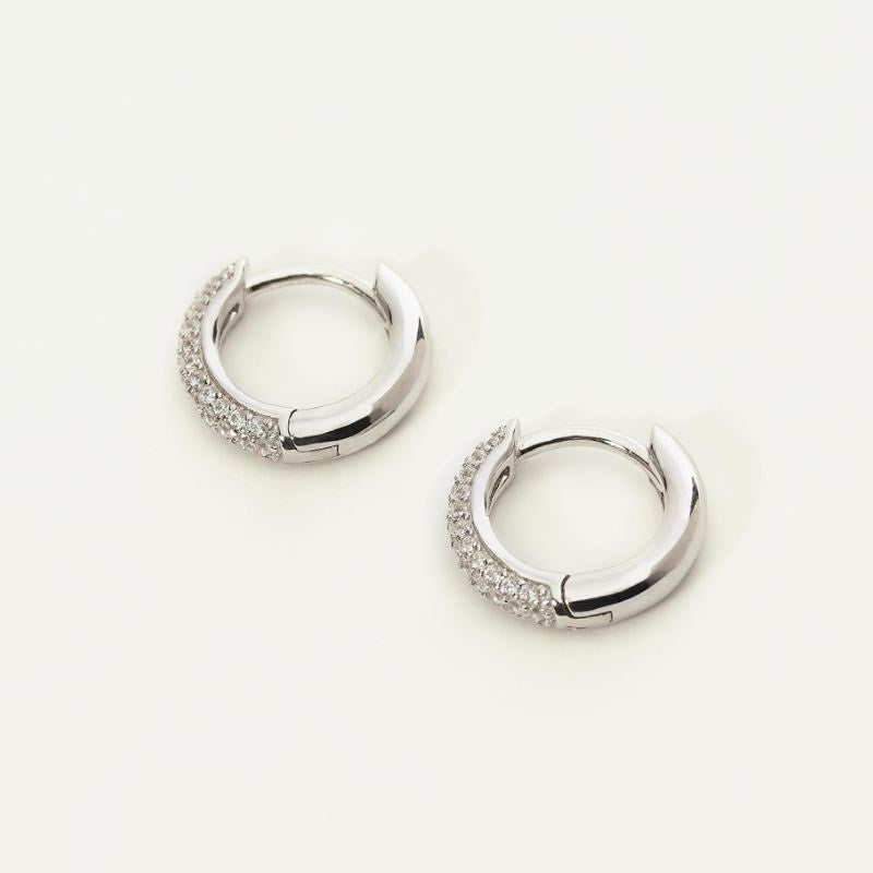Orecchini argento 925 rodiato Ø esterno 12.30 mm con zirconi Ø 1.25 mm