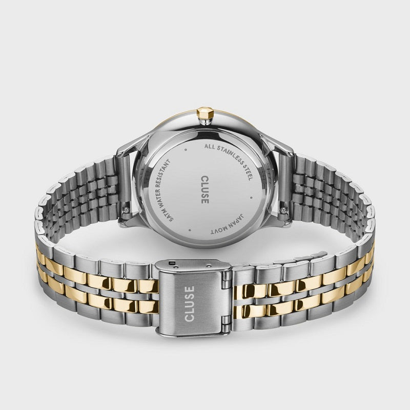 Orologio solotempo da donna Cluse. Collezione Minuit Multifunzione. Materiale: Acciaio. Colore: Oro giallo e argento. Diametro cassa: 34mm. Movimento: Quarzo. Resistenza all'acqua: 5 ATM.