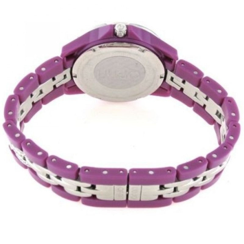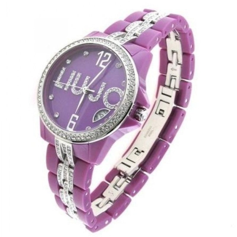 Orologio sollo tempo da donna al quarzo LIU JO. Orologio al quarzo. Cassa con Swarovski in poliuretano 35.00 mm. Fondo in acciaio serrato a vite. Corona a pressione. Quadrante viola con scritta Liu-Jo con Swarovski. Datario ore 4. Cinturino in poliuretano e acciaio con Swarovski. Resistente all'acqua 50mt.