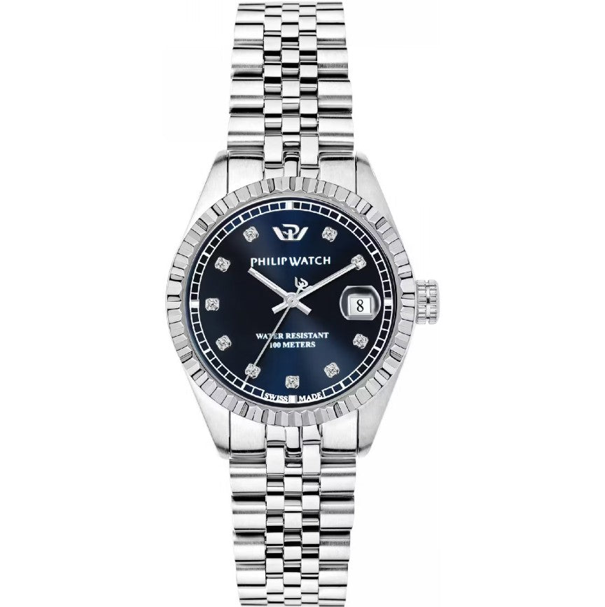 Orologio sollo tempo da donna Philip Watch, collezione Caribe urban. Cassa in Acciaio inossidabile, Larghezza 31mm, Spessore 9.2mm, Finitura Lucido e satinato. Vetro Zaffiro. Materiale cinturino acciaio lucido, Colore silver. Tipo di chiusura Fibbia diver con pulsanti e blocco di sicurezza. Resistente all'acqua 10 atm.