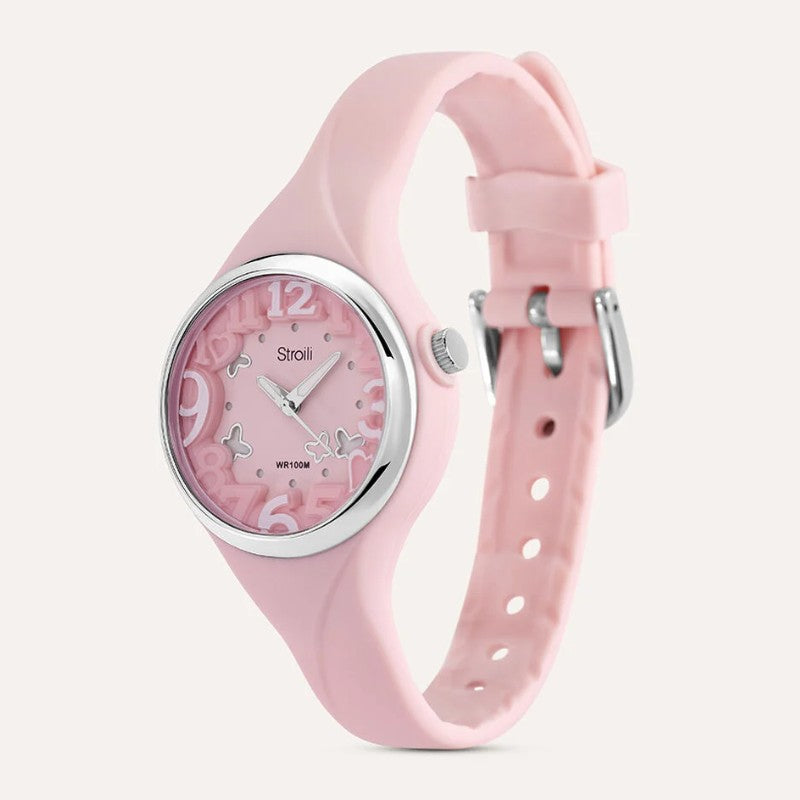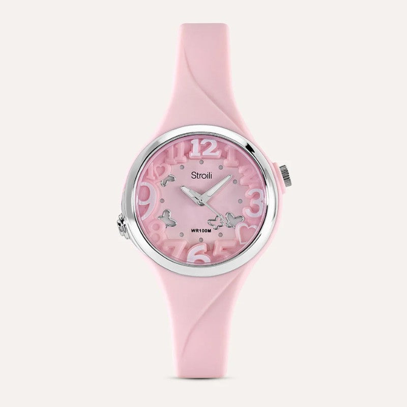 Orologio solo tempo da Donna Stroili Las Vegas. Movimento al quarzo, solo tempo. Cassa in silicone 32 mm viola. Quadrante lilla, con indici acciaio e vetro Acrilico. Impermeabilità 3 atmosfere. Bracciale in silicone rosa.