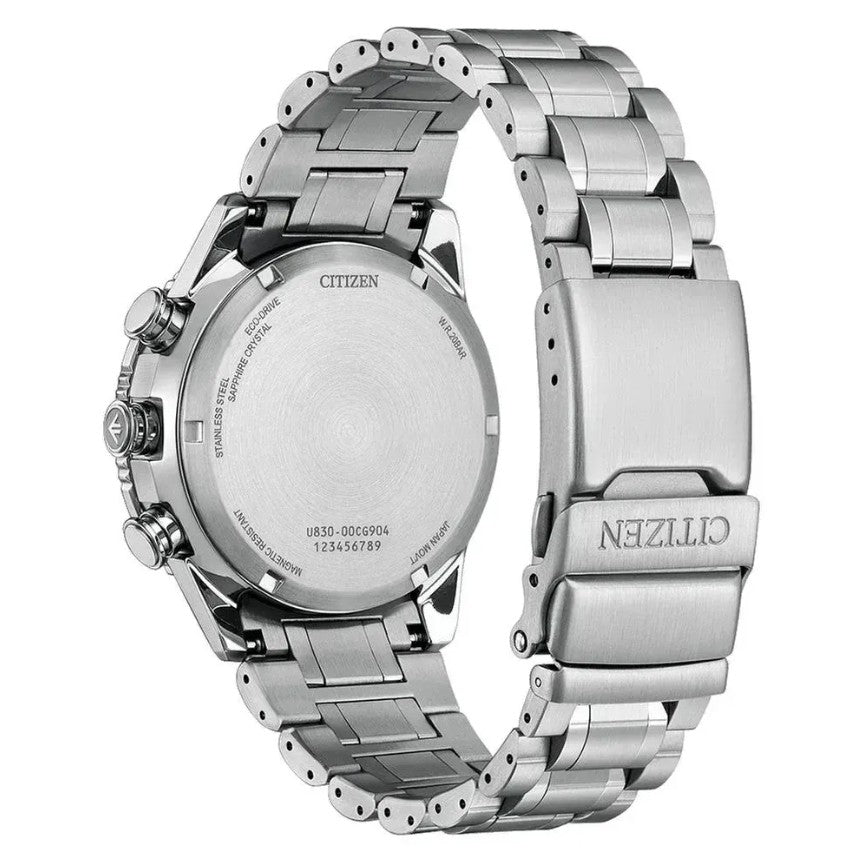 Orologio cronografo da uomo Citizen collezione Promaster Sky. Questo orologio Citizen ha una cassa in Inox con un diametro di 43 mm ed è dotato di un cinturino in Inox. All'interno della cassa si trova un movimento di Citizen e l'orologio è dotato di un cristallo di Zaffiro singolo antiriflesso. L'orologio è impermeabile a 20ATM.