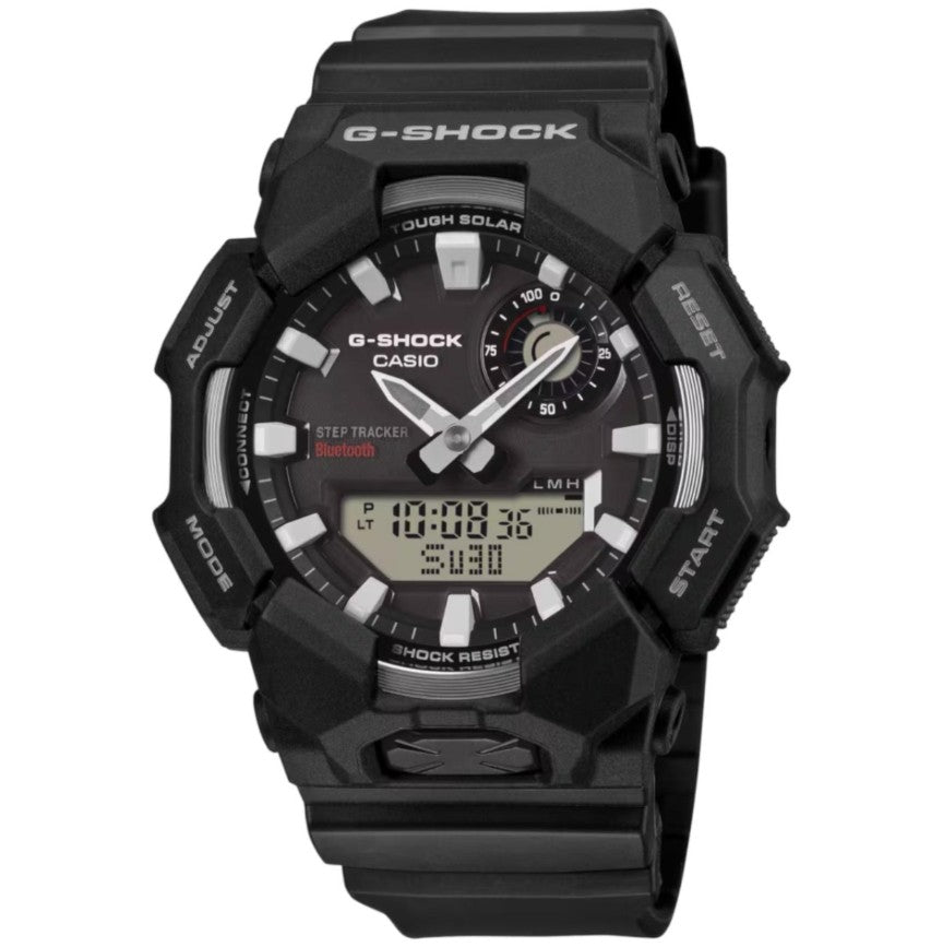 Orologio da uomo Casio G-Shock della collezione Classic realizzato con cassa in cabonio e resina a base biologica color nero con un diametro di 52.3 x 49.3 mm e uno spessore di 15.2 mm. Quadrante è color nero con indici color silver. Ha un vetro minerale e la resistenza all'acqua è di 20 ATM. Cinturino è realizzato in resina a base biologica color nero con una chiusura a fibbia ad ardiglione. La funzione del sensore è contapassi e visualizzazione dell'avanzamento verso l'obiettivo passi. La funzione di connessione allo smartphone è: Mobile Link. L'app da scaricare è: CASIO WATCHES. Le funzioni di connessione all'app sono: regolazione orologio automatica, impostazione semplice dell'orologio, ora internazionale, dati Life Log, informazioni sull'app, ora e posizione e trova telefono. Le caratteristiche dell'orologio sono: ora internazionale, cronometro, timer, promemoria sonoro 5 allarmi giornalieri, luce LED, LED bianco, calendario automatico, attivazione e disattivazione del segnale acustico, funzione risparmio energetico, indicatore del livello della batteria, cronometraggio della corsa, precisione, funzione dello spostamento delle lancette e formato 12/24 ore.